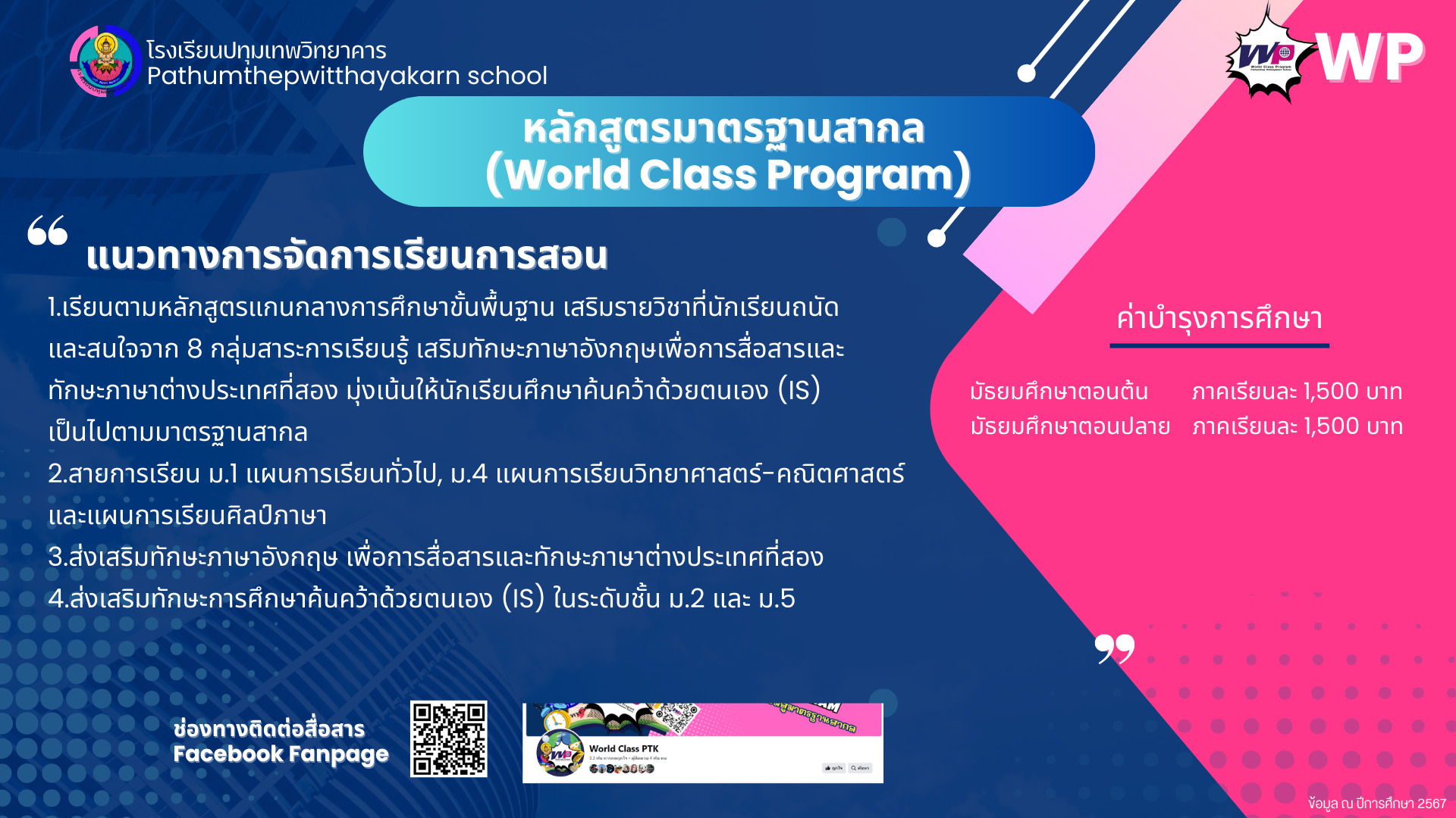 หลักสูตรมาตรฐานสากล (World class Program : WC)